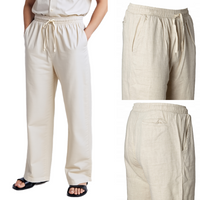 ( ilość produktów: 14 )Spodnie męskie lniane na gumce beżowe bawełna len przewiewne letnie - Redline