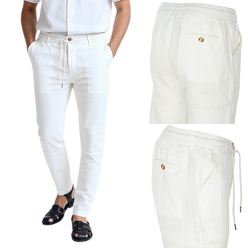( ilość produktów: 1 )Spodnie męskie materiałowe lniane letnie - białe
