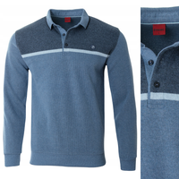 Bluza męska niebieska z kołnierzykiem na zamek ze ściągaczami bawełna - Reymo
