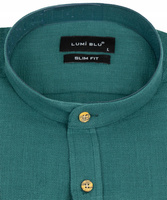 Koszula męska jak lniana butelkowa zieleń ze stójką slim długie rękawy- Lumi Blu