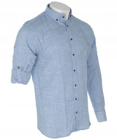Koszula jak lniana z kołnierzem męska błękitna z guzikami bawełniana długie rękawy krój regular - Viadi POLO