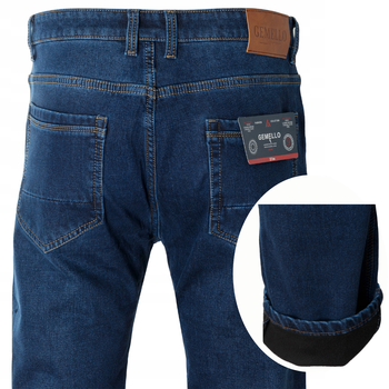 Męskie spodnie jeansy klasyczne niebieskie ocieplane proste - Gemello