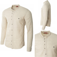 Koszula męska bawełna len casual beżowa letnia przewiewna - Redline