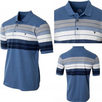 Koszulka męska polo granatowo-szara paski kolorowe dekolt z guzikami kołnierz wiosenna - Reymo