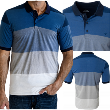 Koszulka męska polo bawełniana niebieska paski dekolt z guzikami kołnierz wiosenna - Reymo