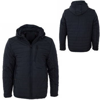 Kurtka męska zimowa rozpinana granatowa pikowana duża odpinany kaptur - J Style