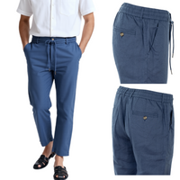 Spodnie męskie materiałowe lniane niebieskie letnie