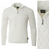 Sweter męski półgolf krótkie zapięcie na zamek kremowy gładki klasyczny - Devanti