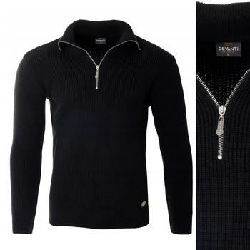 Sweter męski półgolf krótkie zapięcie na zamek czarny klasyczny - Devanti