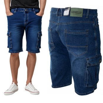 Spodenki męskie jeansowe bojówki krótkie bawełniane granatowe dżinsowe - Gemello