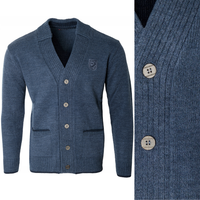 Sweter męski kardigan zapinany na guziki jesienny V-dekolt niebieski gładki wełniany - Reymo