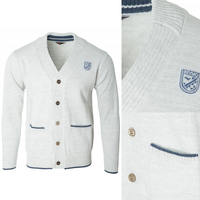 Sweter męski kardigan zapinany na guziki jesienny jasno-szary gładki ciepły wełniany - Reymo