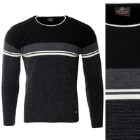 ( ilość produktów: 174 )Sweter męski z okrągłym dekoltem czarny wzór pasy wełniany klasyczny - Devanti