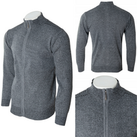 Sweter męski rozpinany wzór w pasy krótki zamek szary półgolf - Must