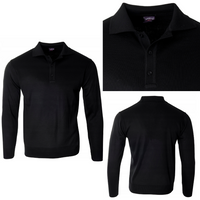 Sweter męski czarny z kołnierzykiem na guziki ze ściągaczami wełna gładki Devir Orme