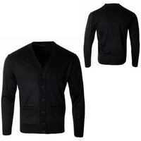 Sweter męski kardigan zapinany na guziki jesienny V-dekolt czarny gładki wełniany - Devir Orme