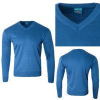 Sweter męski z dekoltem w serek wełniany chabrowy gładki klasyczny - Devir