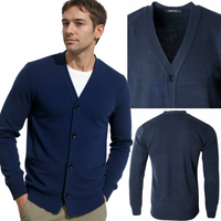 Sweter męski zapinany na guziki jesienny V-dekolt granatowy gładki - Must