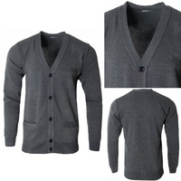 Sweter męski zapinany na guziki jesienny V-dekolt ciemno-szary