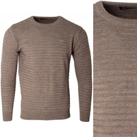 Sweter męski z okrągłym dekoltem brązowy pasy klasyczny - Devanti