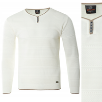 Sweter męski z okrągłym dekoltem krótkie zapięcie na guziki beżowo-biały klasyczny - Devanti